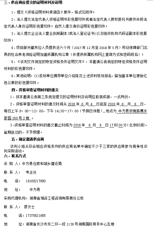 中方縣(迎松路,芙蓉路)自行車道工程項目競爭性談判公告