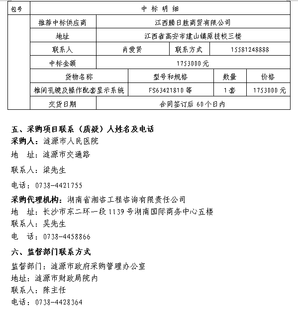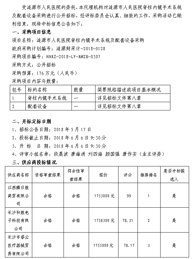 漣源市人民醫(yī)院脊柱內(nèi)鏡手術(shù)系統(tǒng)及配套設(shè)備采購 中標(biāo)結(jié)果公告