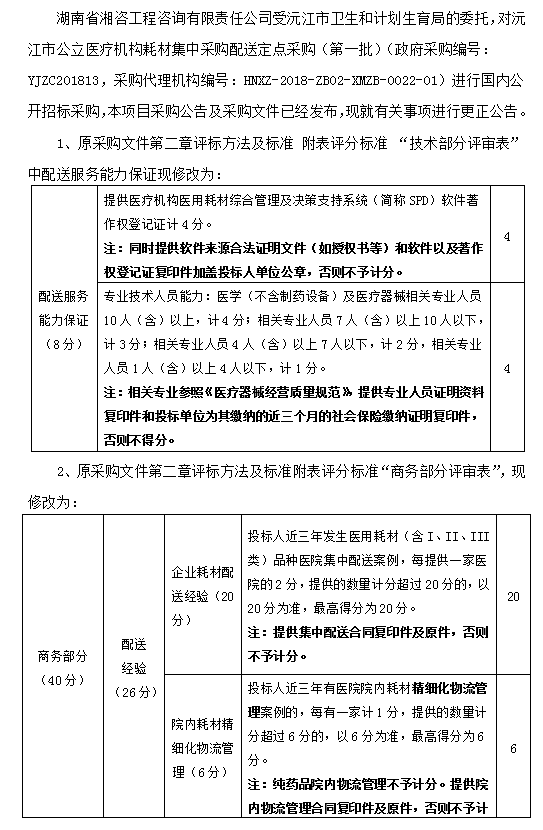 沅江市公立醫療機構耗材集中采購配送定點采購(第一批) 更正公告