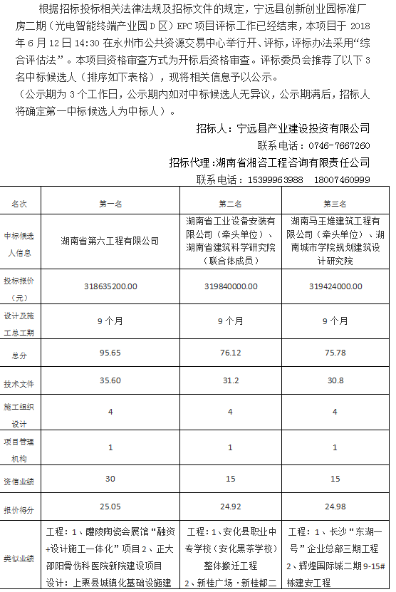 寧遠縣創新創業園標準廠房二期(光電智能終端產業園D區)EPC項目中標候選人公示