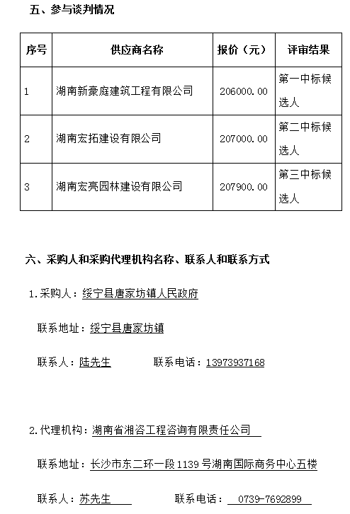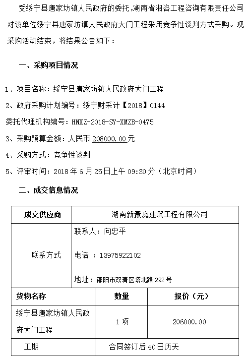 綏寧縣唐家坊鎮人民政府大門工程談判成交公告