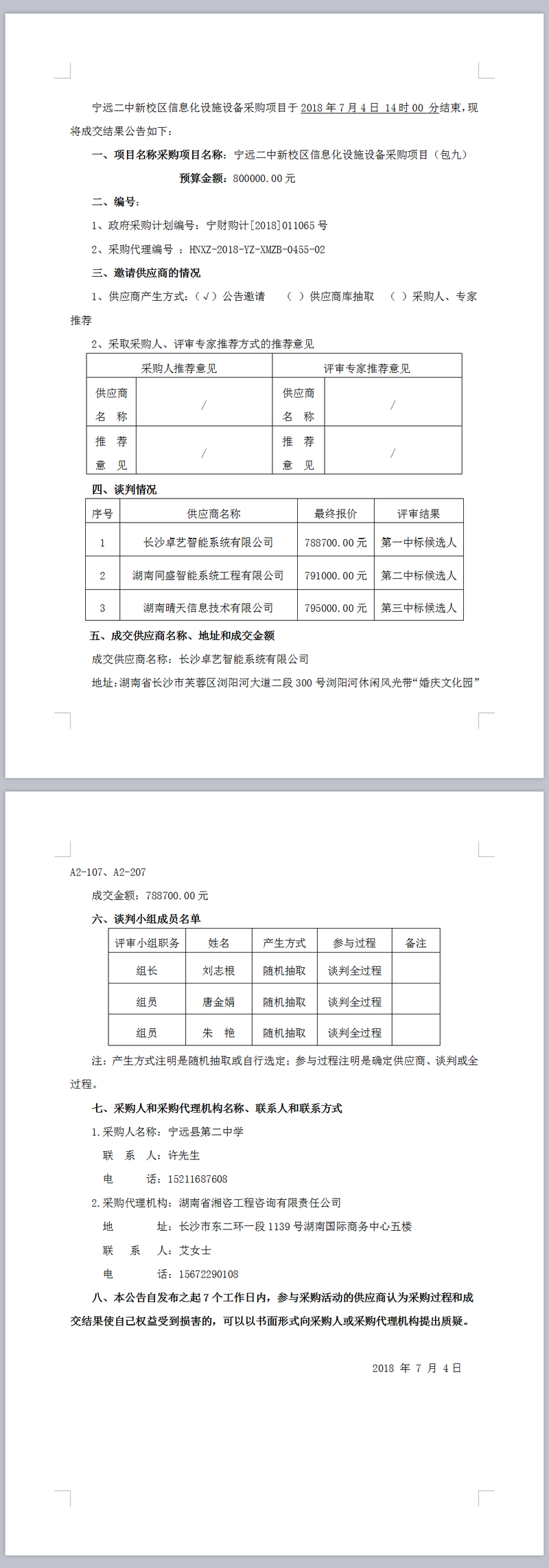 寧遠二中新校區信息化設施設備采購項目(包九)競爭性談判成交結果公告