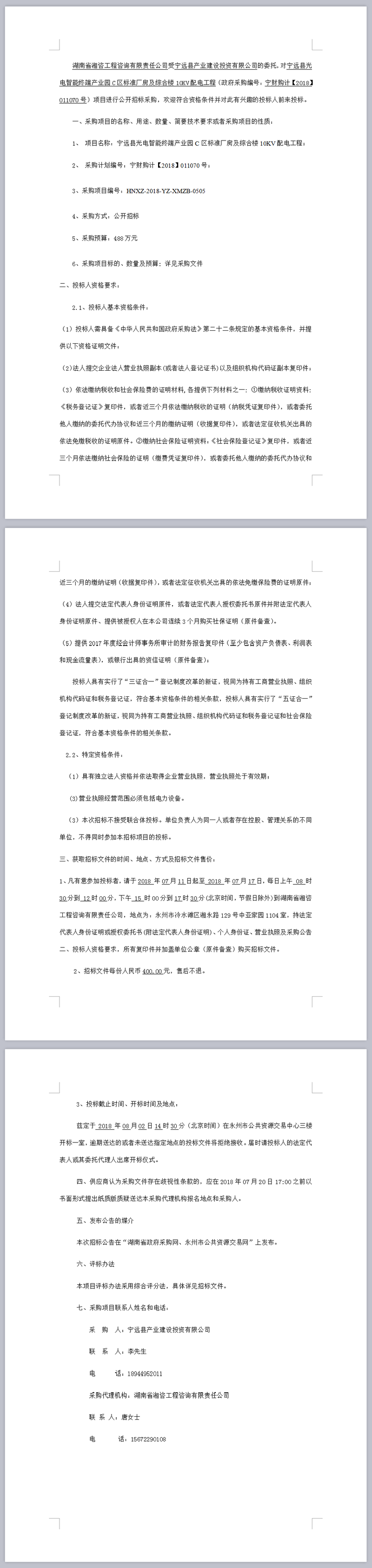 寧遠縣光電智能終端產業園C區標準廠房及綜合樓10KV配電工程采購項目公開招標公告