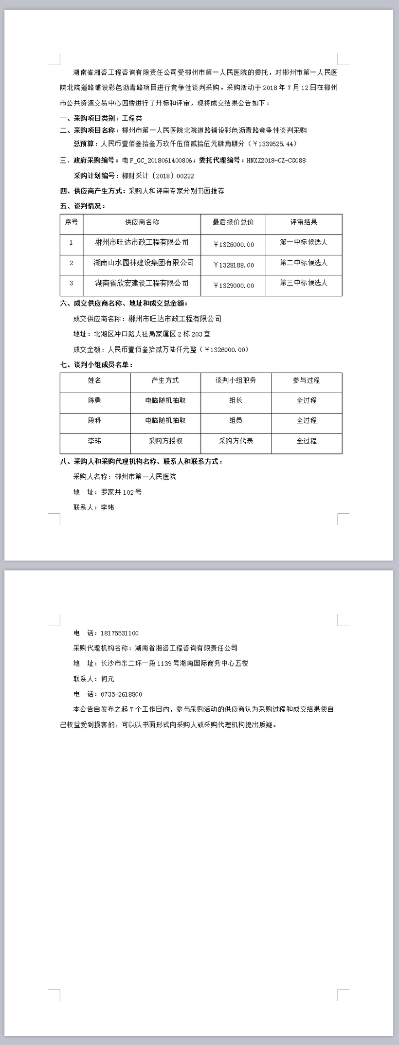 郴州市第一人民醫院北院道路鋪設彩色瀝青路競爭性談判采購成交公告
