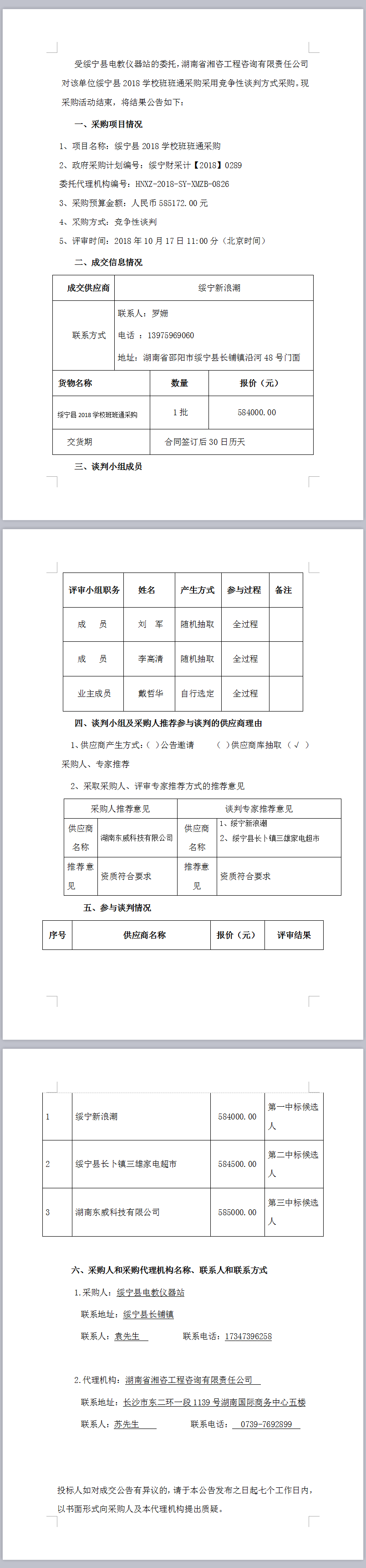 綏寧縣2018學(xué)校班班通采購(gòu)談判成交公告