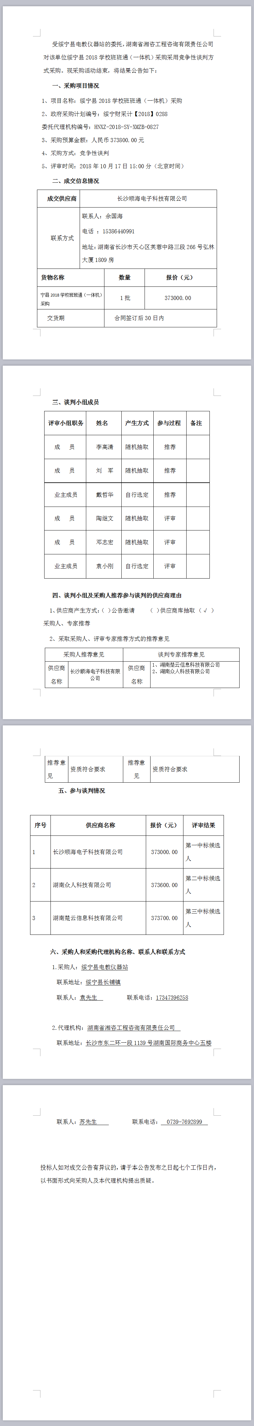 綏寧縣2018學校班班通(一體機)采購 談判成交公告