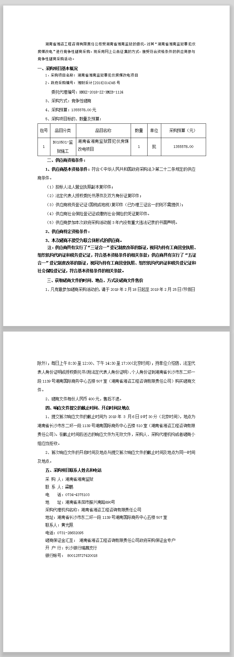 湖南省湘南監(jiān)獄罪犯伙房煤改電項目磋商邀請