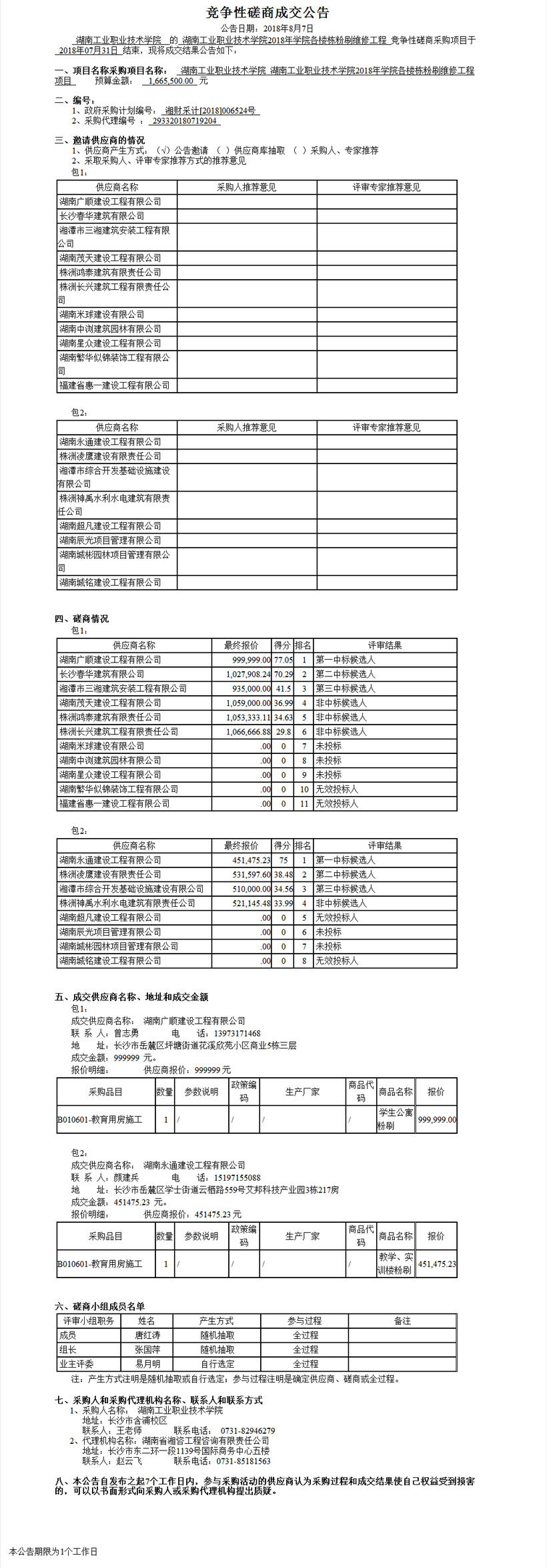 湖南工業職業技術學院湖南工業職業技術學院2018年學院各樓棟粉刷維修工程項目競爭性磋商成交公告