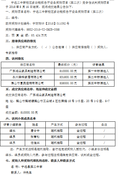 寧遠二中新校區(qū)多功能報告廳設(shè)備采購項目(第二次)競爭性談判成交公告