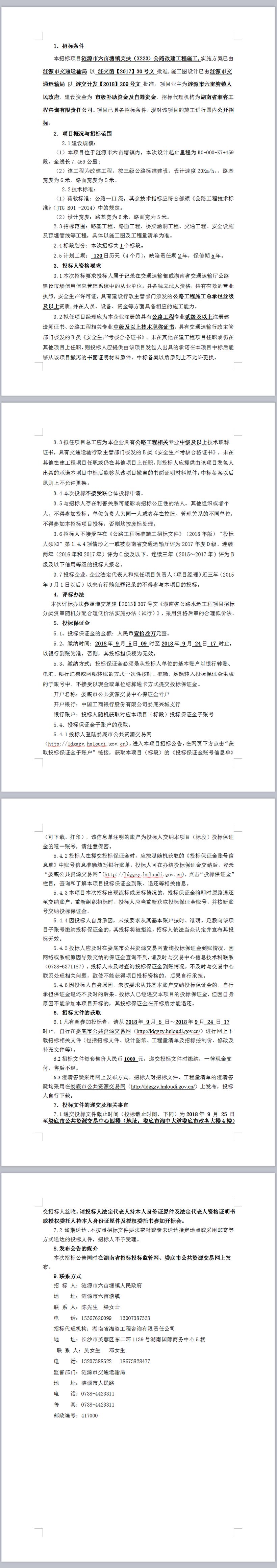 漣源市六畝塘鎮芙扶(X223)公路改建工程施工招標公告