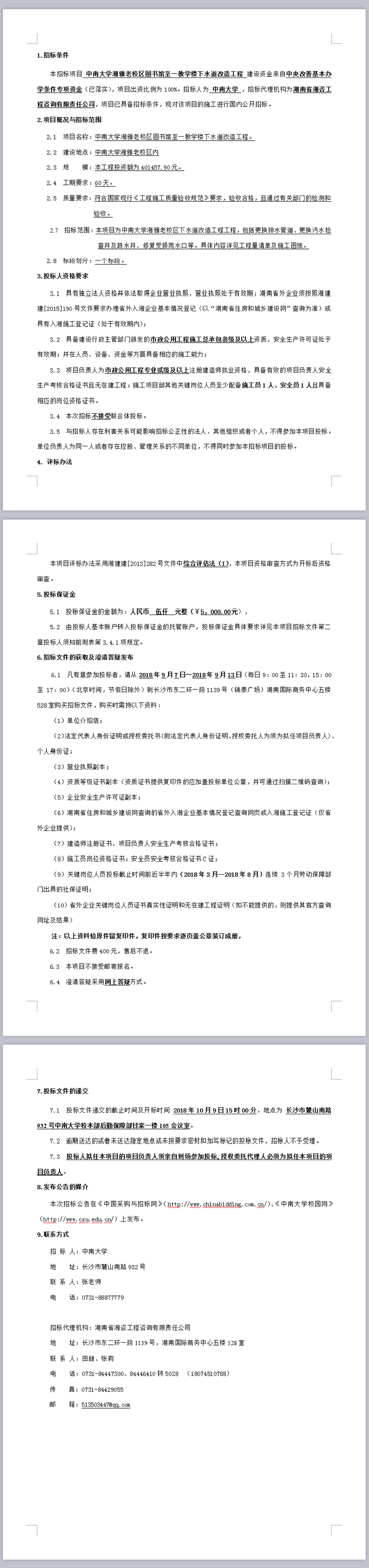 中南大學湘雅老校區圖書館至一教學樓下水道改造工程 招標公告