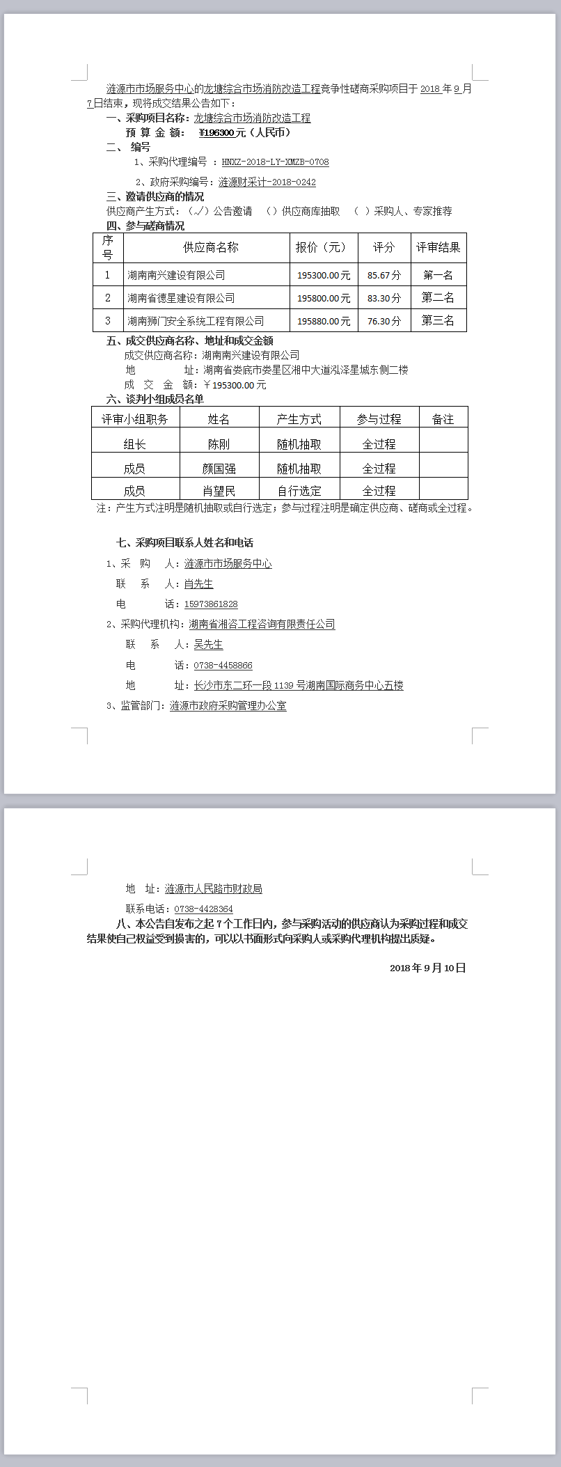 龍塘綜合市場消防改造工程競爭性磋商成交結果公告