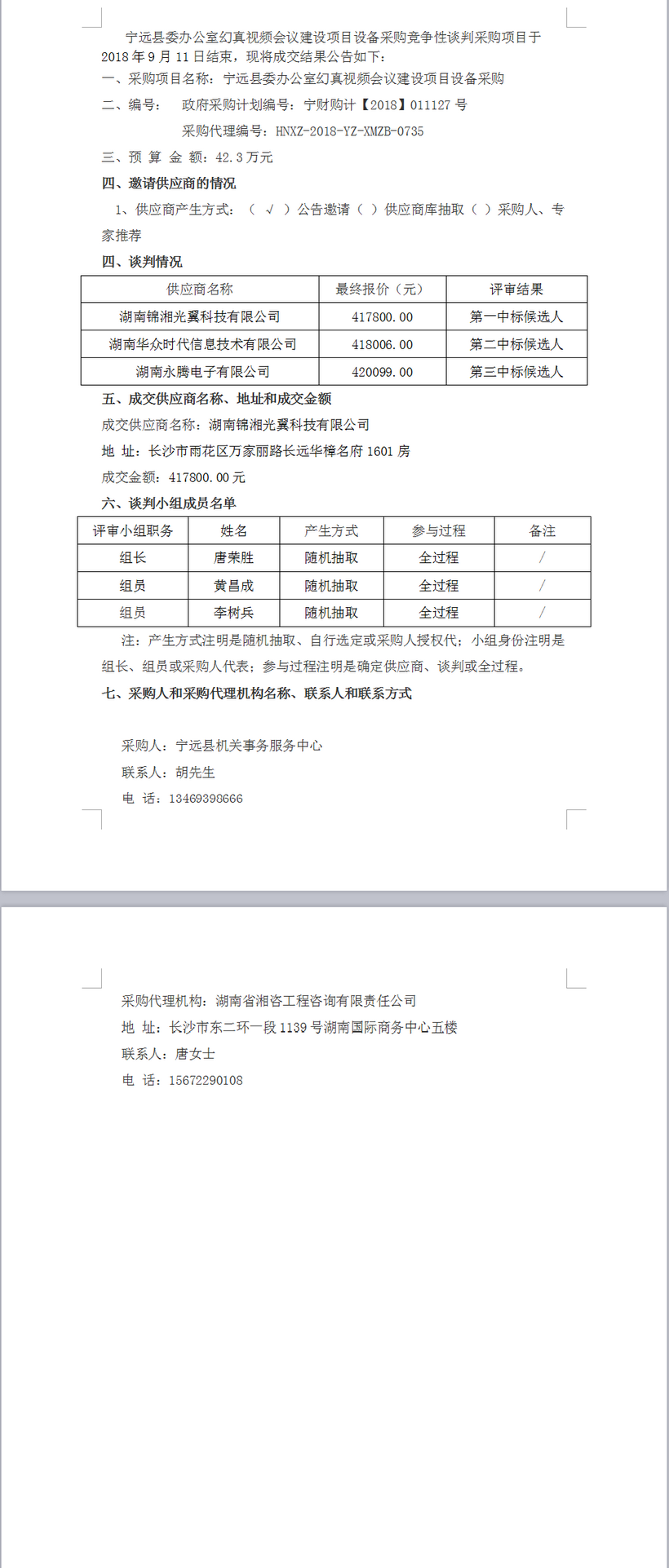 寧遠縣委辦公室幻真視頻會議建設(shè)項目設(shè)備采購競爭性談判成交公告