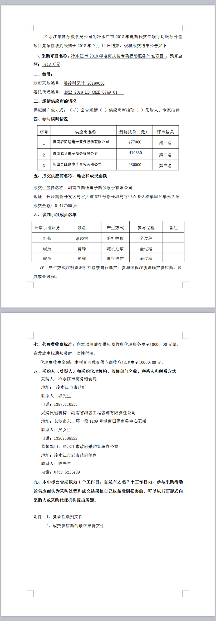 冷水江市2018年電商扶貧專項行動服務外包項目競爭性談判成交公告