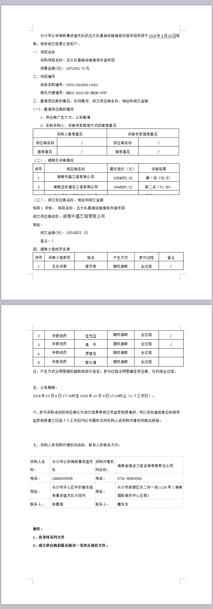 長沙市公安局刑事偵查支隊五大隊基礎設施維修改造項目結果公告