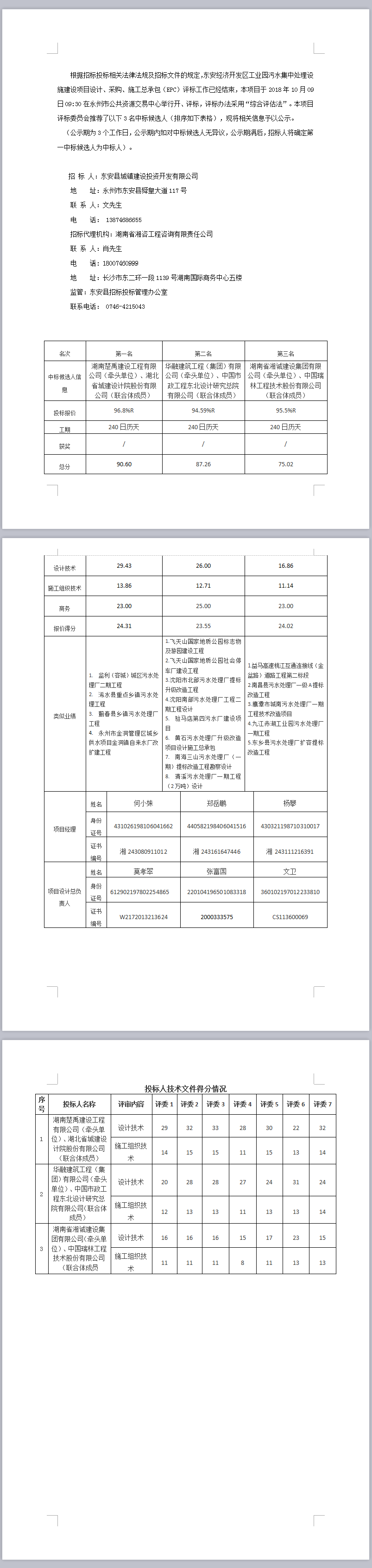 東安經濟開發區工業園污水集中處理設施建設項目設計、采購、施工總承包(EPC)項目中標候選人公示