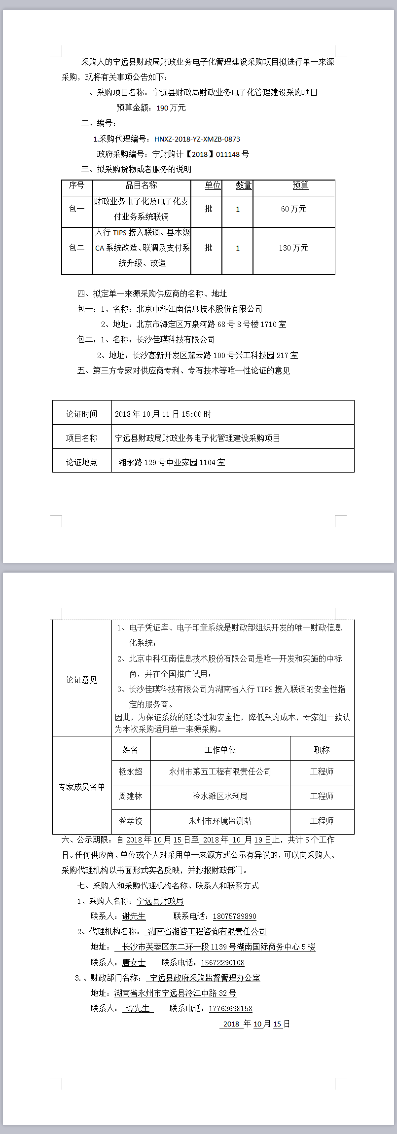 寧遠縣財政局財政業務電子化管理建設采購項目單一來源采購公示