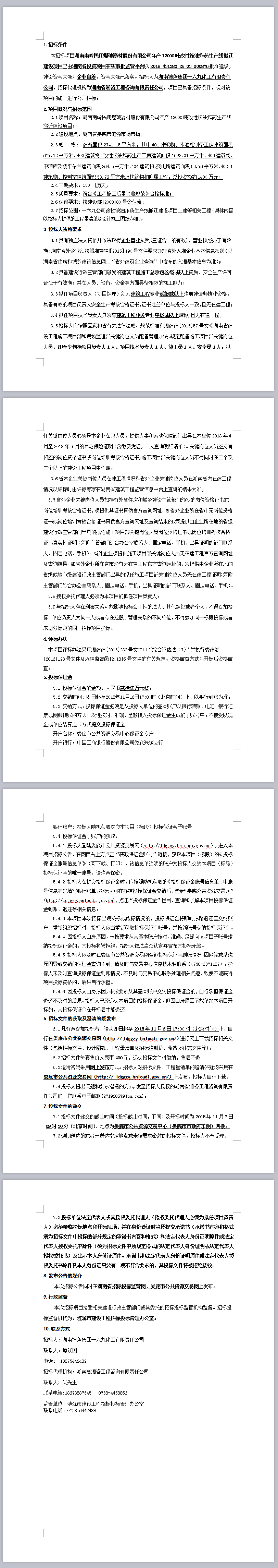 湖南南嶺民用爆破器材股份有限公司年產12000噸改性銨油炸藥生產線搬遷建設項目招標公告