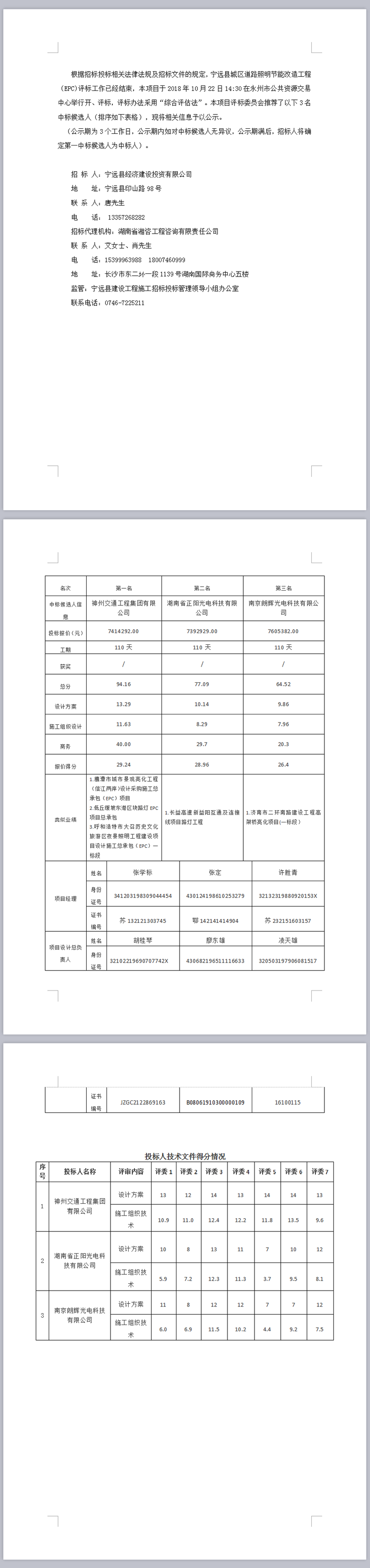 寧遠縣城區道路照明節能改造工程(EPC)項目 中標候選人公示