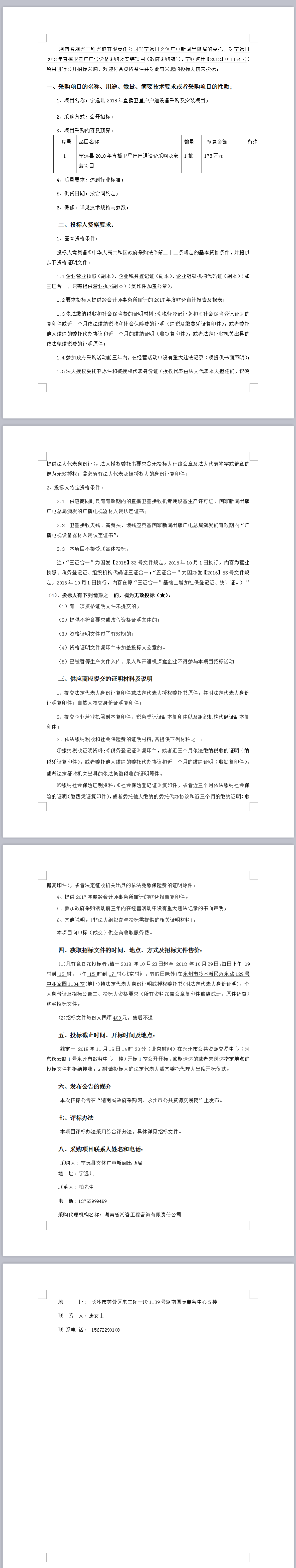 寧遠縣2018年直播衛星戶戶通設備采購及安裝項目公開招標公告