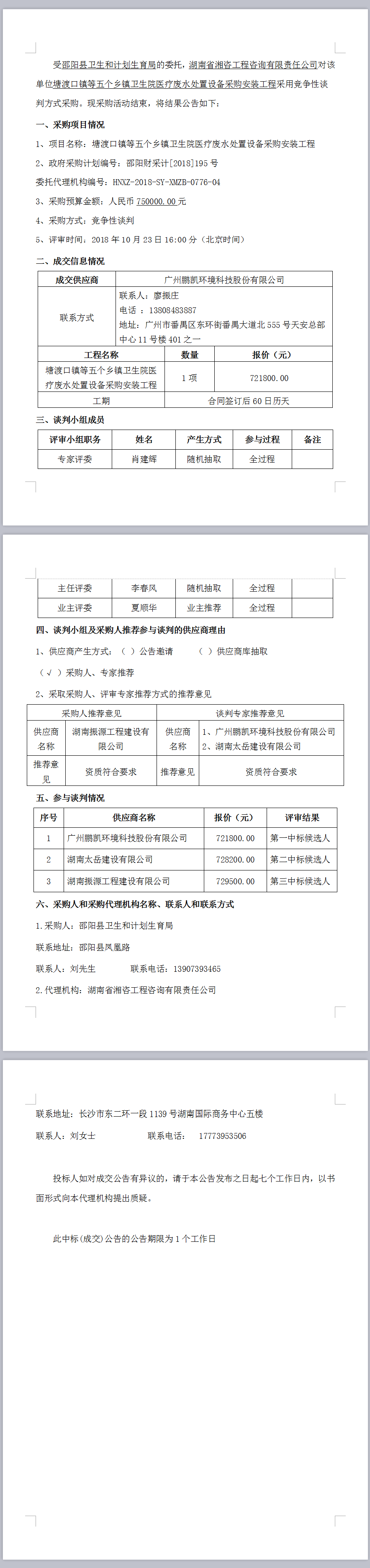 塘渡口鎮(zhèn)等五個鄉(xiāng)鎮(zhèn)衛(wèi)生院醫(yī)療廢水處置設(shè)備采購安裝工程談判成交公告