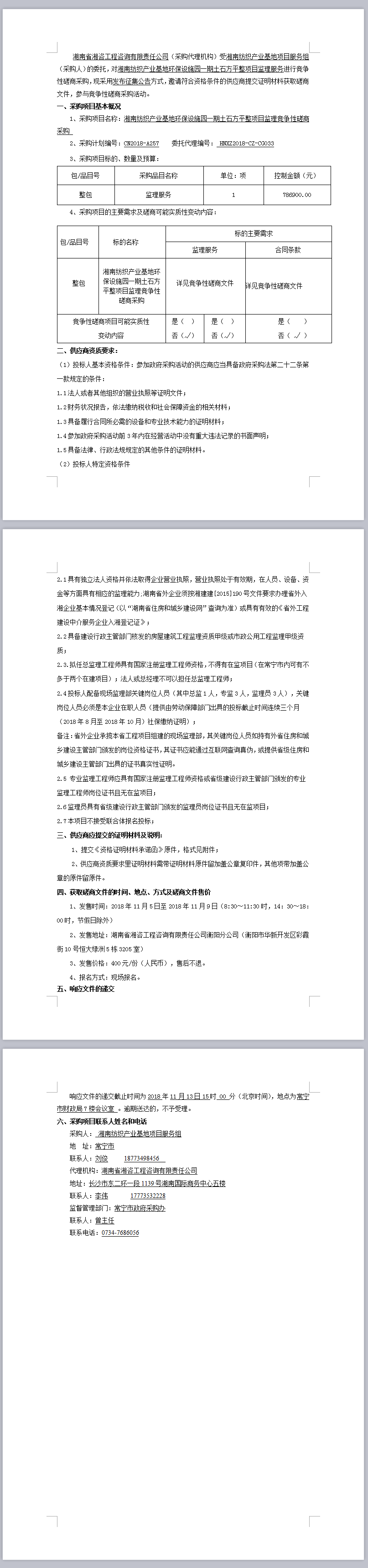 湘南紡織產(chǎn)業(yè)基地環(huán)保設(shè)施園一期土石方平整項(xiàng)目監(jiān)理競(jìng)爭(zhēng)性磋商采購(gòu)磋商邀請(qǐng)