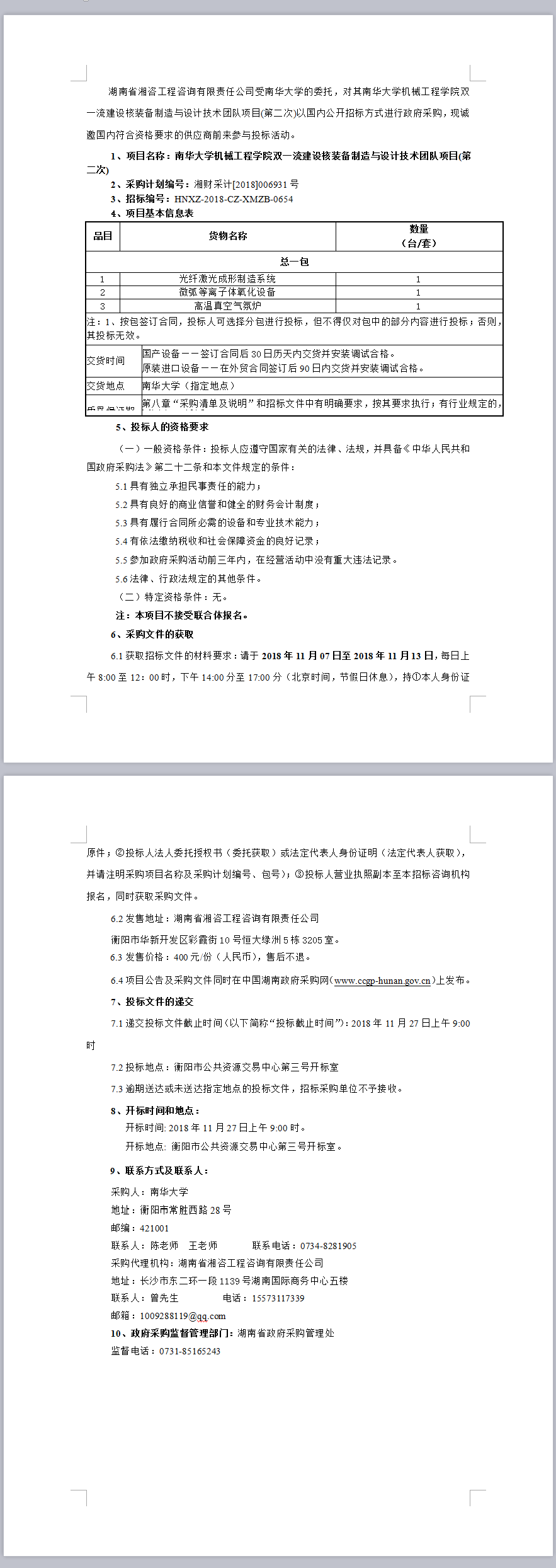 南華大學機械工程學院雙一流建設核裝備制造與設計技術團隊項目(第二次) 招標公告