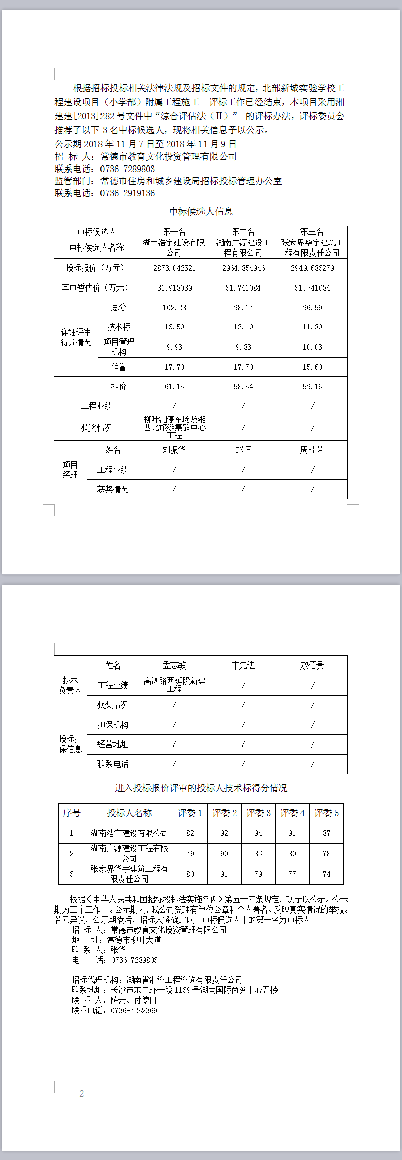 北部新城實驗學校工程建設項目(小學部)附屬工程施工中標候選人公示