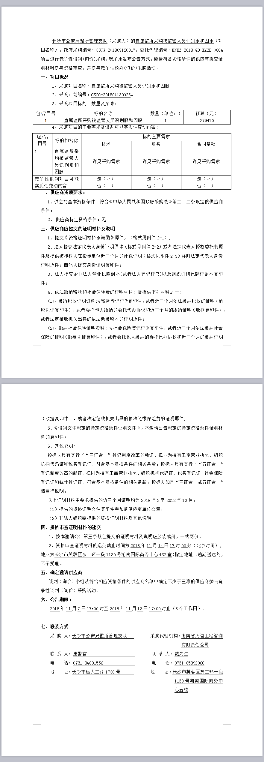 直屬監所采購被監管人員識別服和囚服(第二次)競爭性談判邀請公告