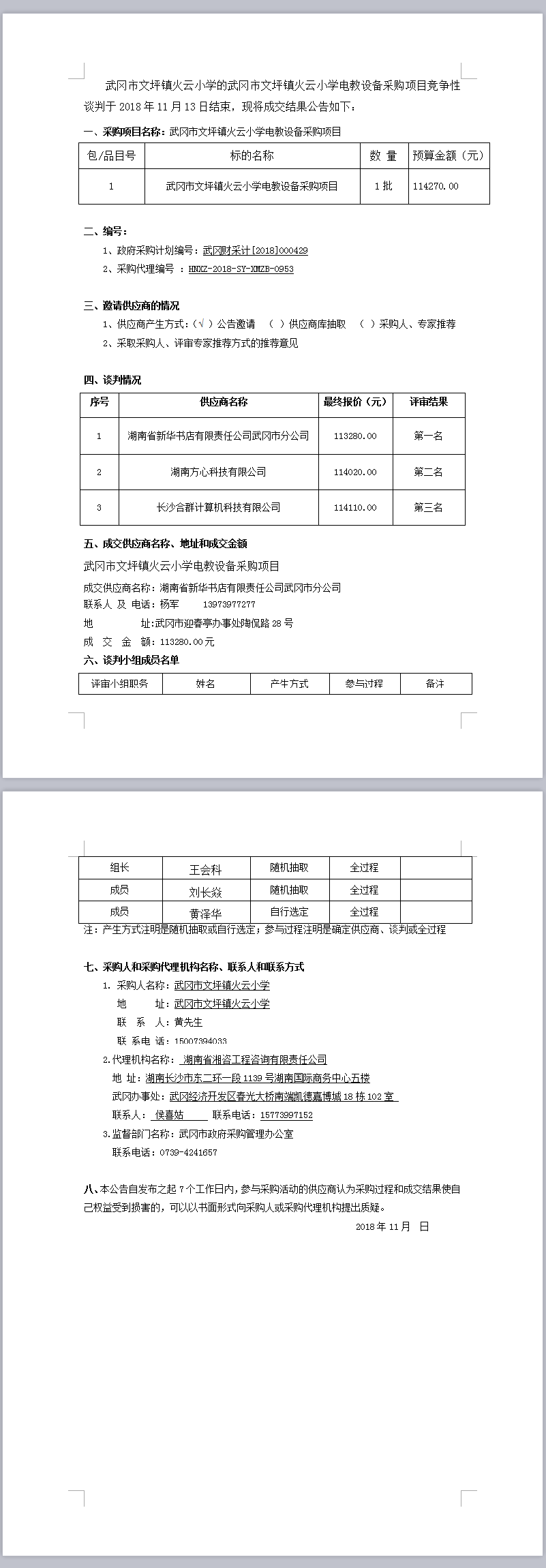 武岡市文坪鎮(zhèn)火云小學(xué)電教設(shè)備采購項(xiàng)目競(jìng)爭(zhēng)性談判成交結(jié)果公告