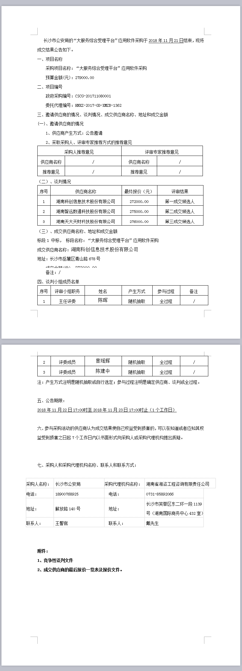 “大服務綜合受理平臺”應用軟件采購結果公告