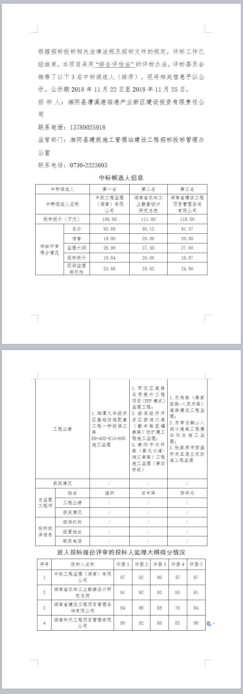 湖南湘江流域湘陰段漕溪港水環境(黑臭污水)綜合治理工程二期監理招標投標信息公示表