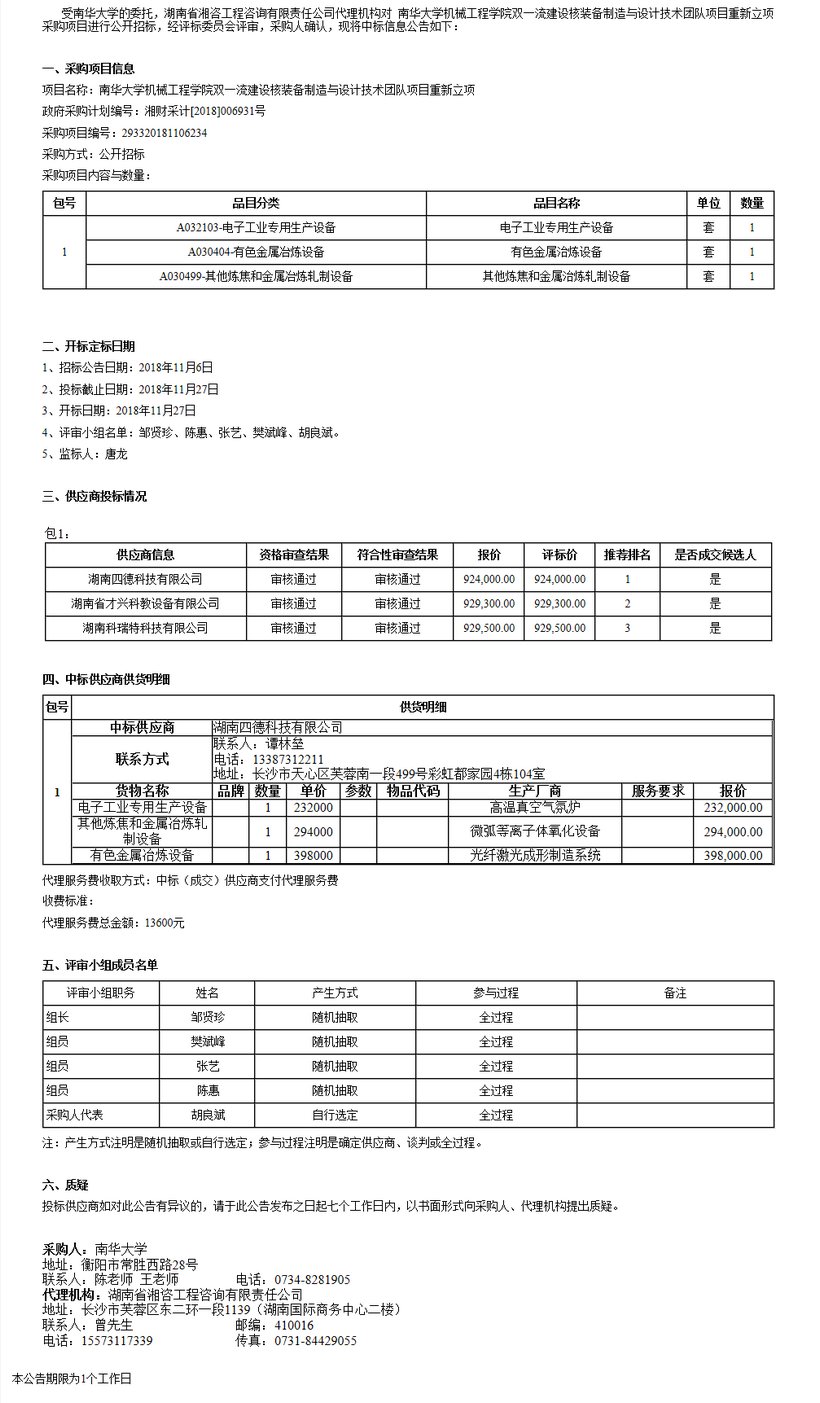 南華大學機械工程學院雙一流建設核裝備制造與設計技術團隊項目重新立項公開招標中標公告