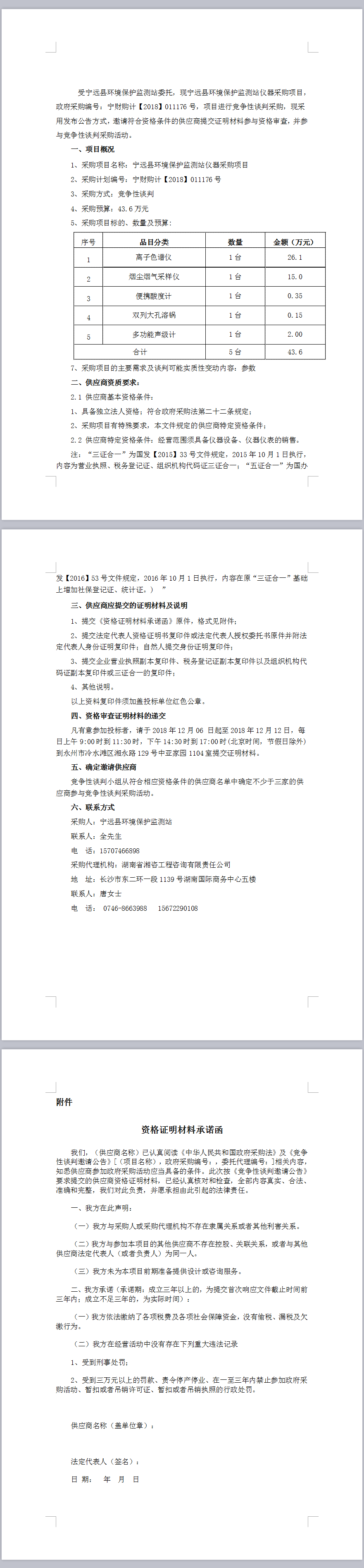 寧遠縣環境保護監測站儀器采購項目競爭性談判公告