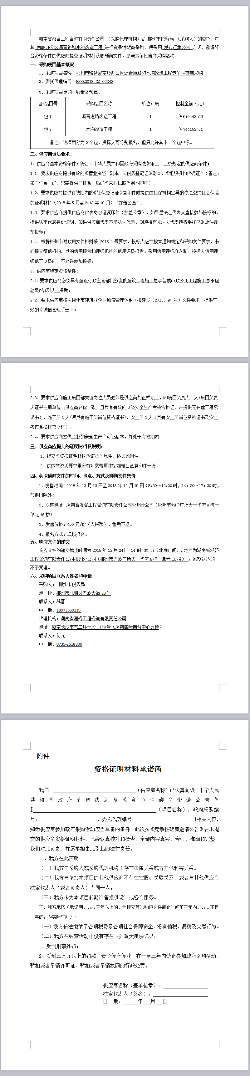 郴州市稅務(wù)局南嶺辦公區(qū)瀝青道路和水溝改造工程競爭性磋商采購磋商公告