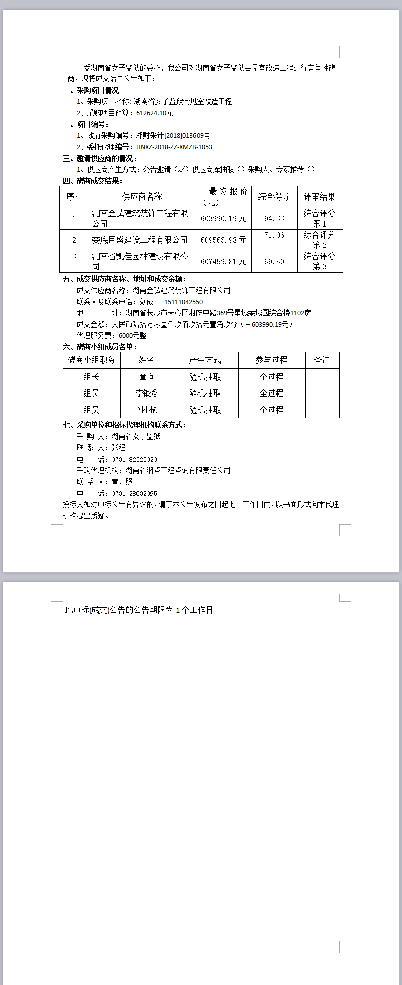 湖南省女子監(jiān)獄會見室改造工程競爭性磋商成交公告