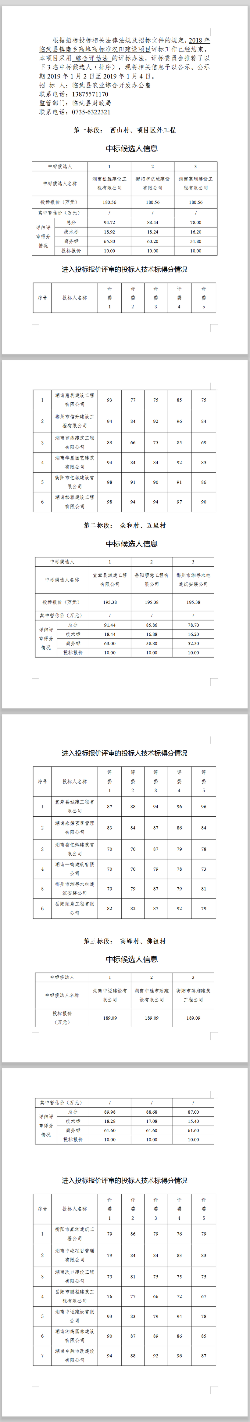 2018年臨武縣鎮南鄉高峰高標準農田建設項目中標候選人公示