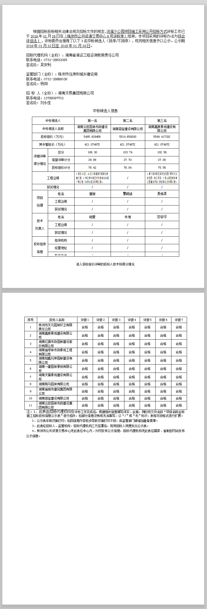 浣溪沙公園項目施工招標投標信息公示表