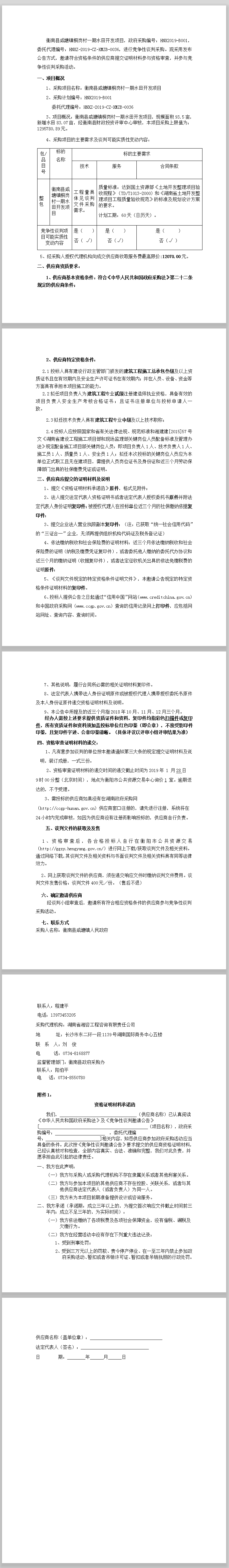 衡南縣咸塘鎮桐崗村一期水田開發項目談判公告