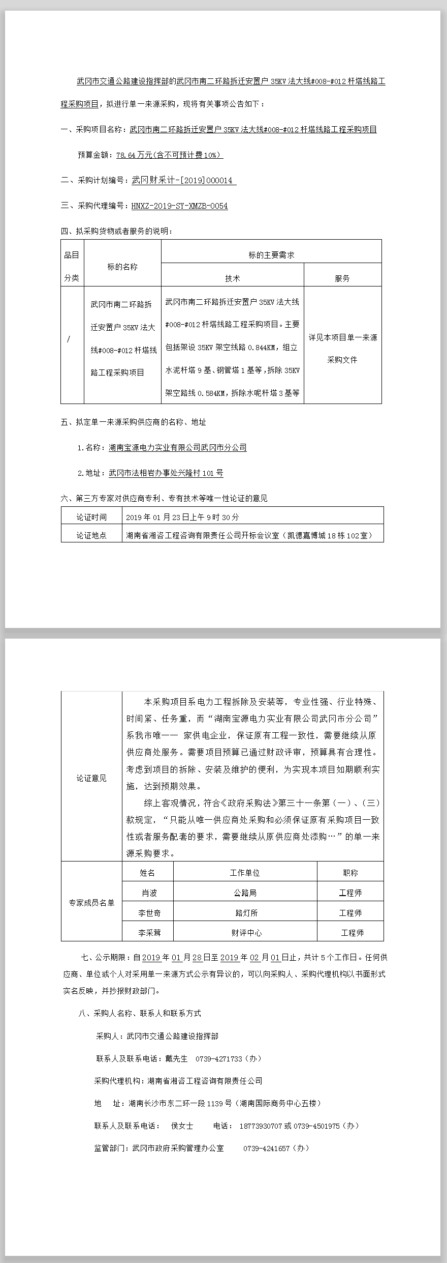 武岡市南二環(huán)路拆遷安置戶35KV法大線#008—#012桿塔線路工程采購(gòu)項(xiàng)目單一來(lái)源采購(gòu)公示