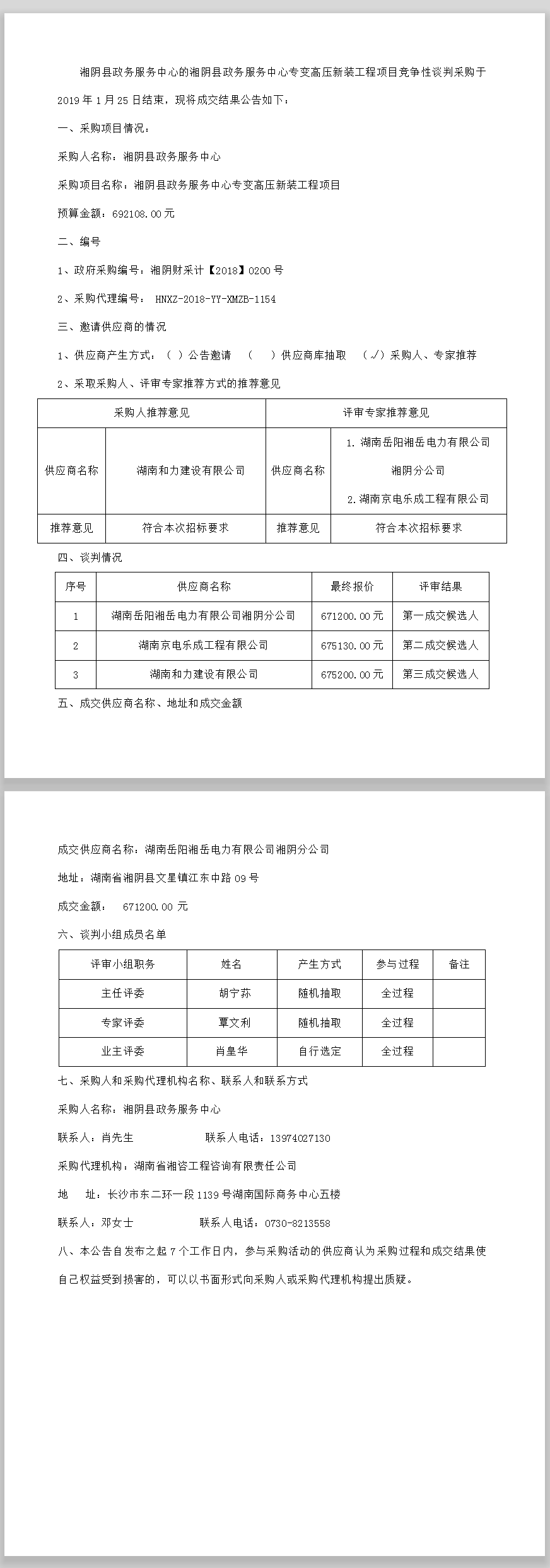 湘陰縣政務(wù)服務(wù)中心專變高壓新裝工程項(xiàng)目競(jìng)爭(zhēng)性談判成交結(jié)果公告