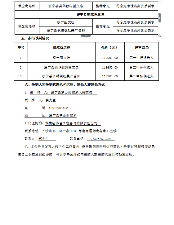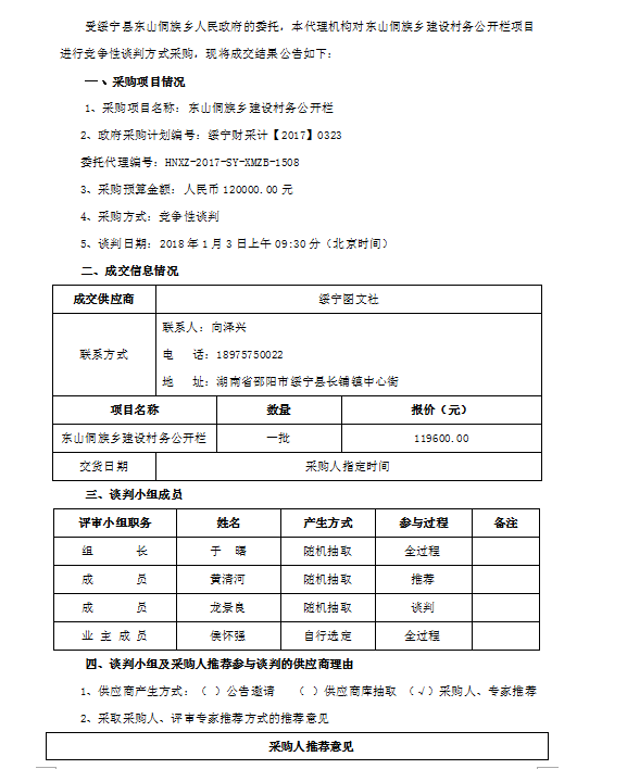 綏寧縣東山侗族鄉(xiāng)建設(shè)村務(wù)公開欄談判成交公告
