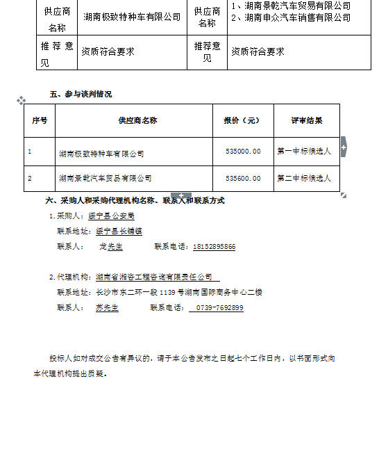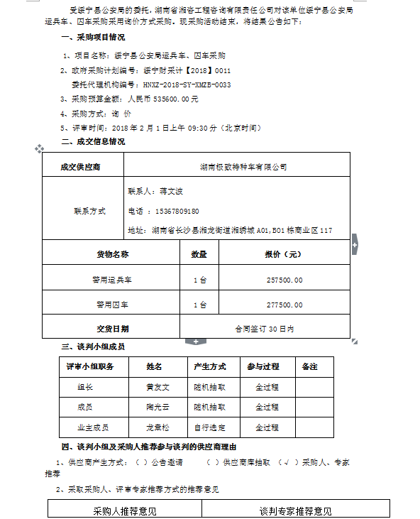 綏寧縣公安局運(yùn)兵車、囚車采購(gòu)成交公告