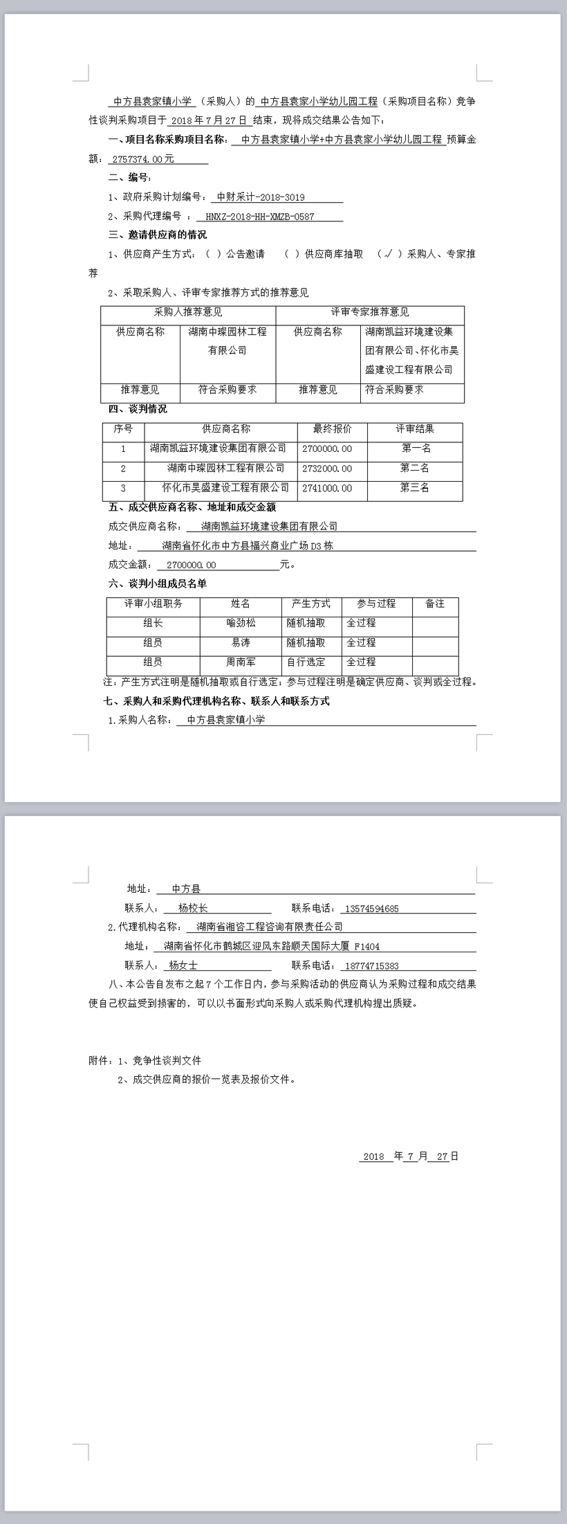 中方縣袁家鎮(zhèn)小學(xué)+中方縣袁家小學(xué)幼兒園工程競(jìng)爭(zhēng)性談判成交結(jié)果公告