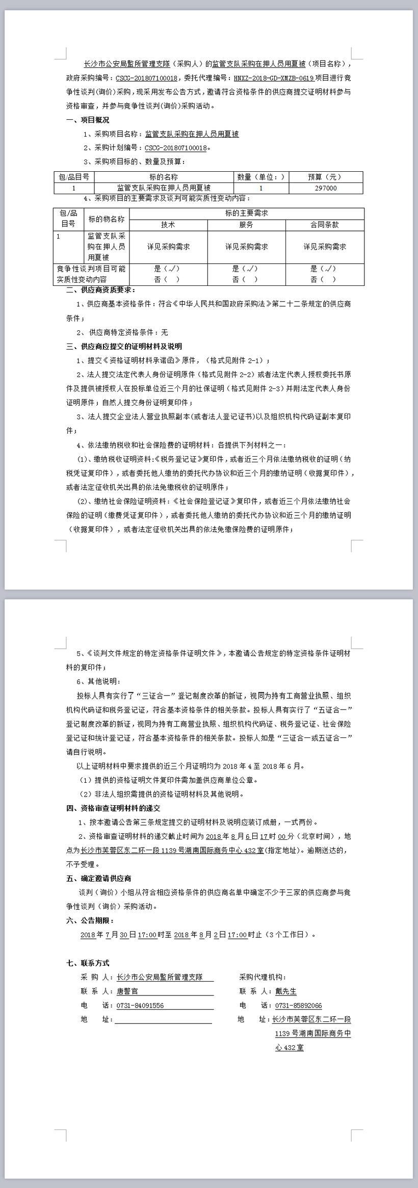 監管支隊采購在押人員用夏被競爭性談判邀請公告