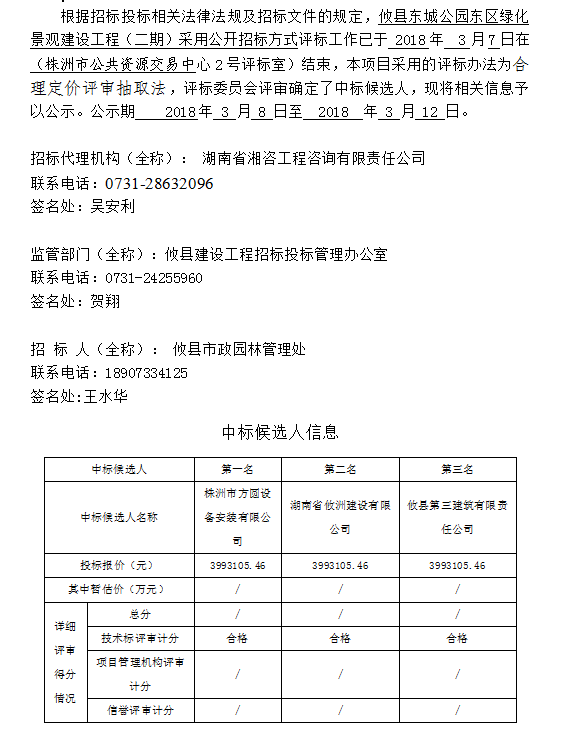 攸縣東城公園東區(qū)綠化景觀建設工程(二期)招標投標信息公示表