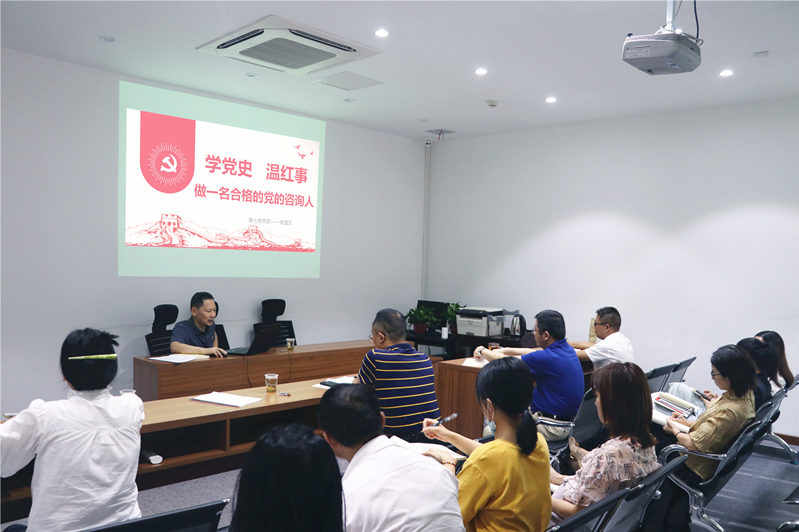 8月27日,公司(第七支部)組織召開了“學黨史 溫紅事 做一名合格的黨的咨詢人”黨史專題學習。專題學習由省咨詢公司黨委委員、副總經理、第七支部書記謝盛文主持,支部全體黨員參加。