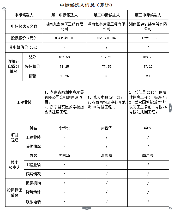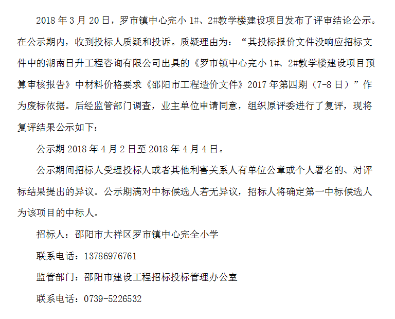 羅市鎮(zhèn)中心完小1#、2#教學(xué)樓建設(shè)項目 招標(biāo)投標(biāo)信息公示表(復(fù)評)