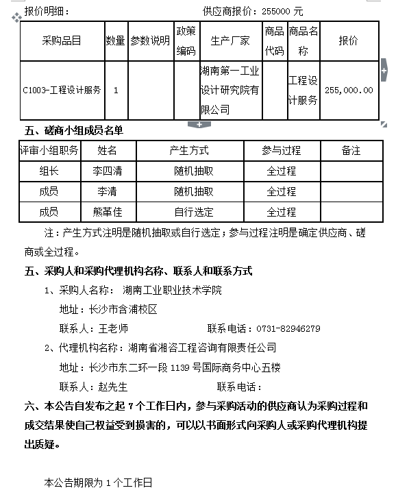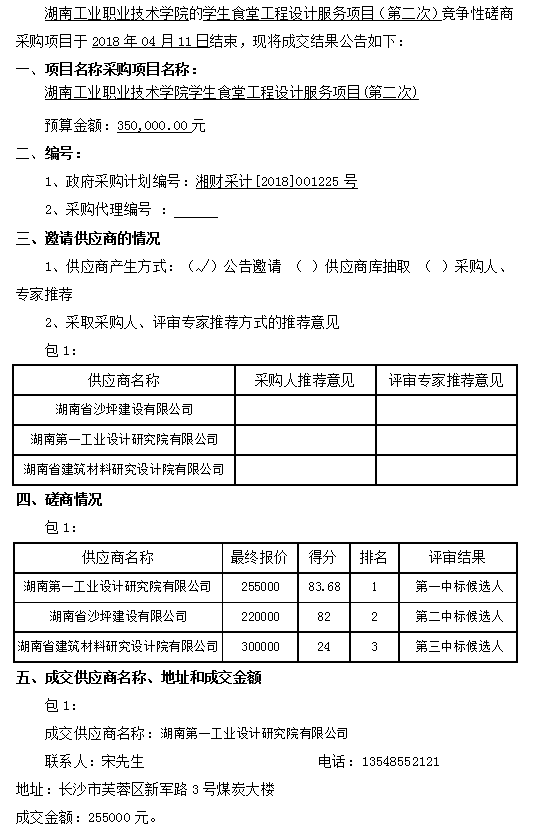 湖南工業(yè)職業(yè)技術學院學生食堂工程設計服務項目(第二次)